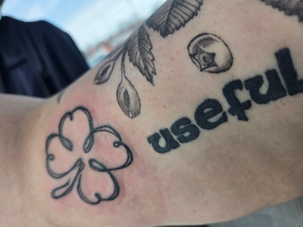 H. T. Martineau’s new sketchy clover flash tattoo from after the interview.