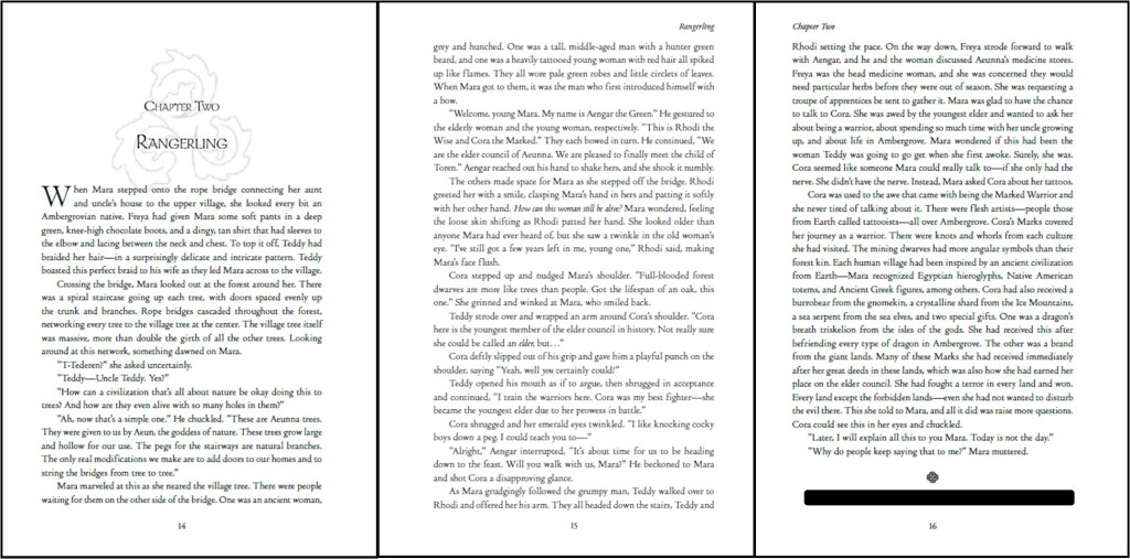 This feedback is great for me, but it would also be good to have feedback for other readers. As a reader, I would be more likely to check out or purchase a book from an author I don’t know If I’m able to learn these things about the story from reviews. How Mara is the protagonist who isn’t immediately good at everything; she has to earn her stripes. How especially the breaks between Chapter 11 & 12 and 15 & 16 end in such a way that the reader just had to continue to see what happens next, even if it was way past bedtime. How an experienced D&D player can read the game scene from the POV of the player character and know when the player is rolling for perception, rolling to hit, and rolling very low and injuring herself.