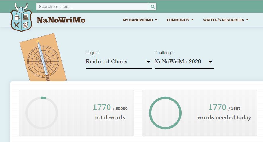 This year, I am participating in November NaNo. For those of you unfamiliar with NaNo, the goal is to write 1,667 words a day of a novel, totaling 50,000 words by the end of the month. Because I am well into Realm of Chaos, this means that I should be able to have most of the first draft completed by the end of the month, and I may even be able to finish the first draft by the end of the year. It’s a tall order, but I’m excited to try. I was able to write much of Ranger’s Odyssey using the April 2019 and 2020 Camp NaNos (these have individual word count goals, so I did 20,000 the first time and 35,000 the second time). This is by far the most I will attempt, and I am working full time and attempting a few other things in addition, but I feel positive about it so far.