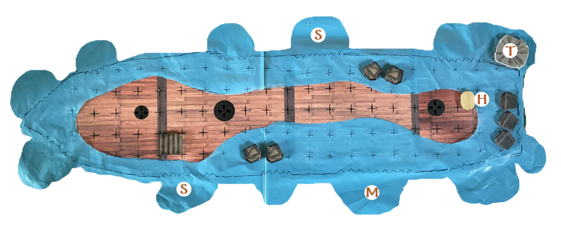 Players are in Marauder’s Cove when something in the water causes catastrophic damage to all the ships but one. The players are members of a mob that forms to investigate the single suspiciously unscathed ship—to avenge their own ships or injured crew or simply to get to the bottom of this.